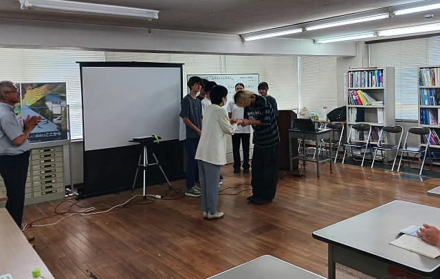 生徒の皆さんには大変お世話になりました。知らない人たちの前で少しの緊張もあったと思いますが、すばらし発表だったと思います。環境都市工学科の生徒は、9月末に本発表となります。自信を持って挑んで下さい。